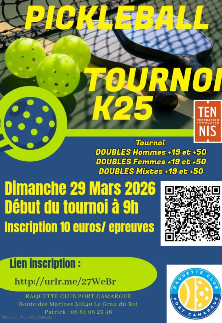 le Dimanche 29 mars 2026 Tournoi de Pickleball K25